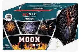 Efekty: Czerwone i zielone gwiazdy z białym migotaniem, brokatowa korona z zielonym migotaniem, czerwona palma z białym migotaniem, kolorowe gwiazdy z trzeszczeniem, zielona palma z trzeszczeniem, fioletowe i zielone gwiazdy z czerwonym migotaniem, czerwone i zielone gwiazdy ze srebrną chryzantemą.